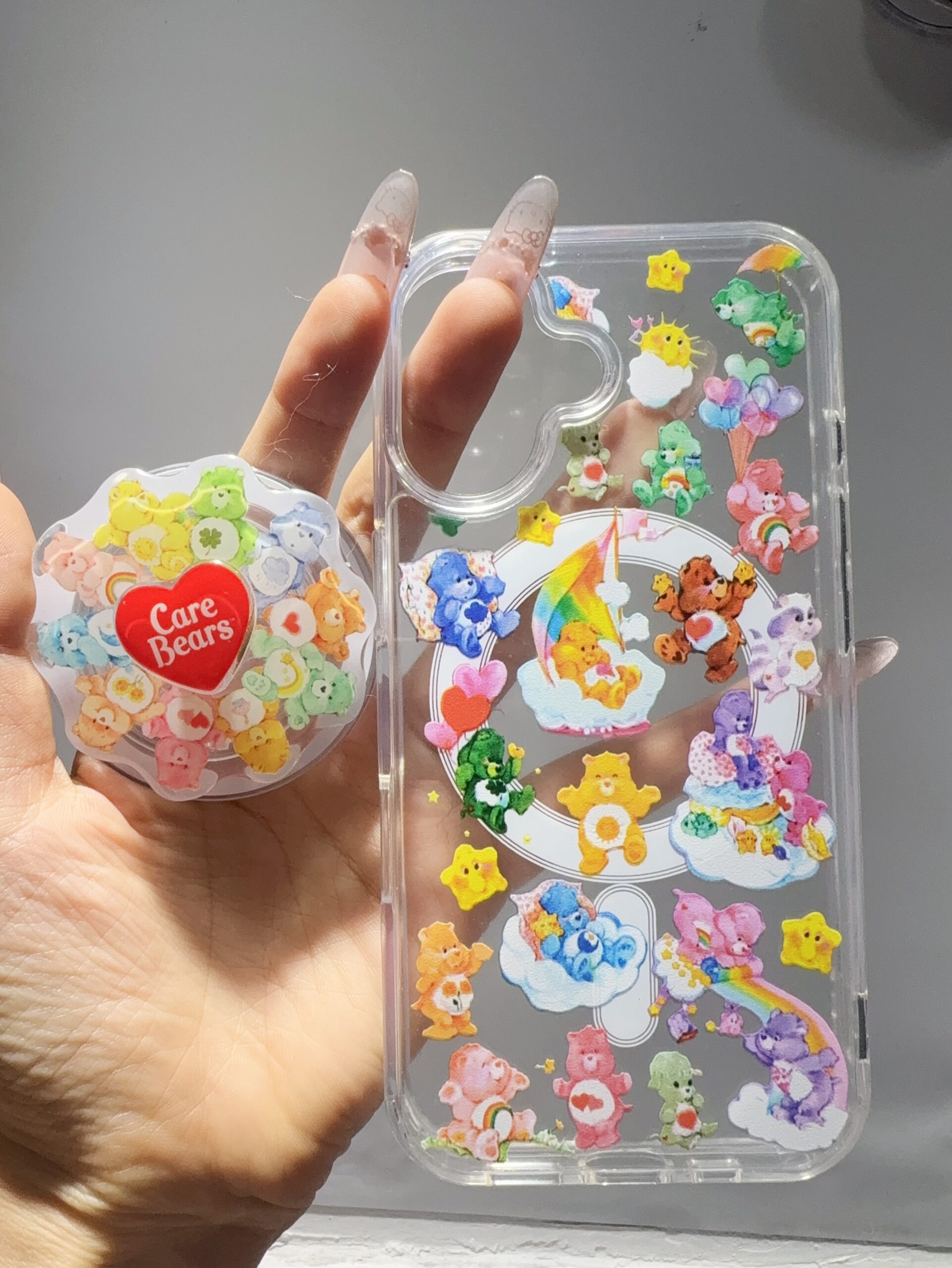 family spinning carebear magnectic phonecase and popsockets