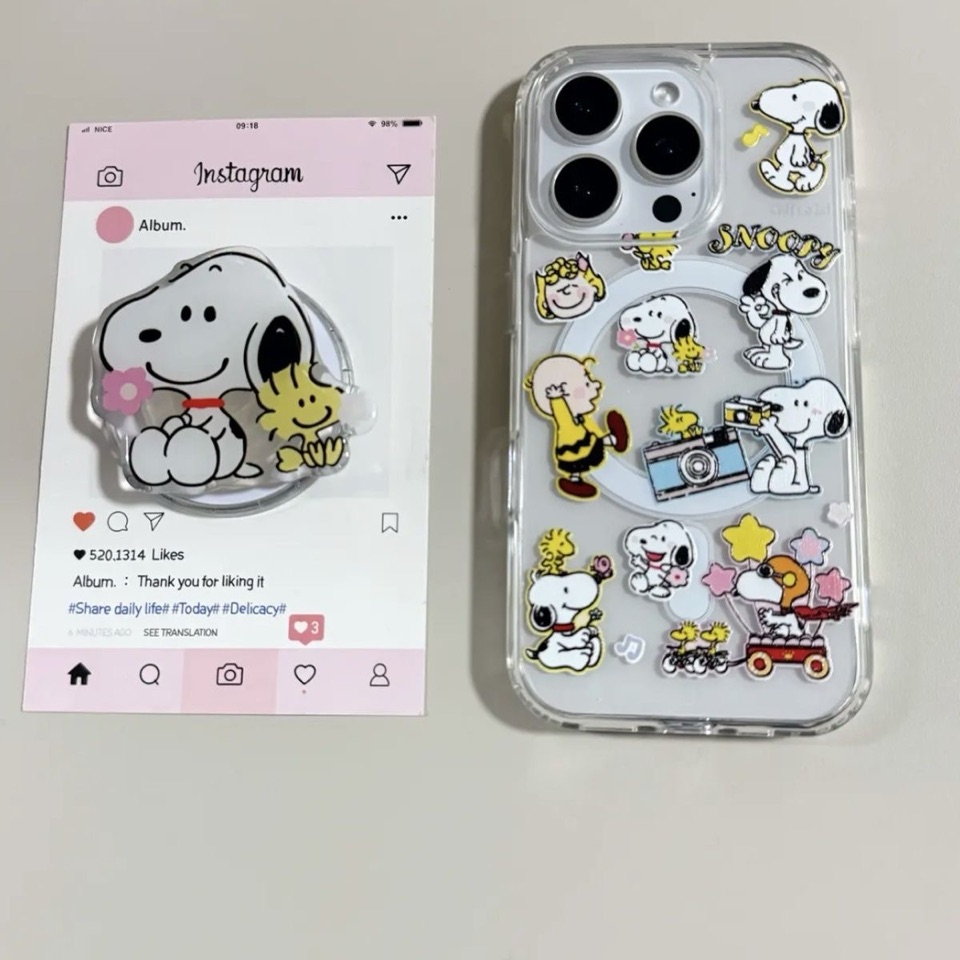 yellow snoopy magnectic phonecase and popsockets